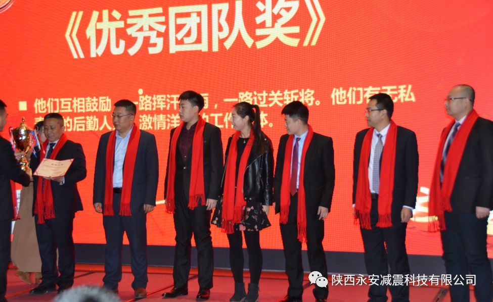 其次颁发的是2017年优秀团队奖:经公司研究决定授予陕西尊龙凯时减震科技有限公司甘肃分公司和生产部2017年优秀团队称号,以表彰在2017年的销售业绩、市场竞争和开拓、生产任务订单执行、产品质量管控、新产品研发、生产节约、团队建设等方面做出的贡献。
